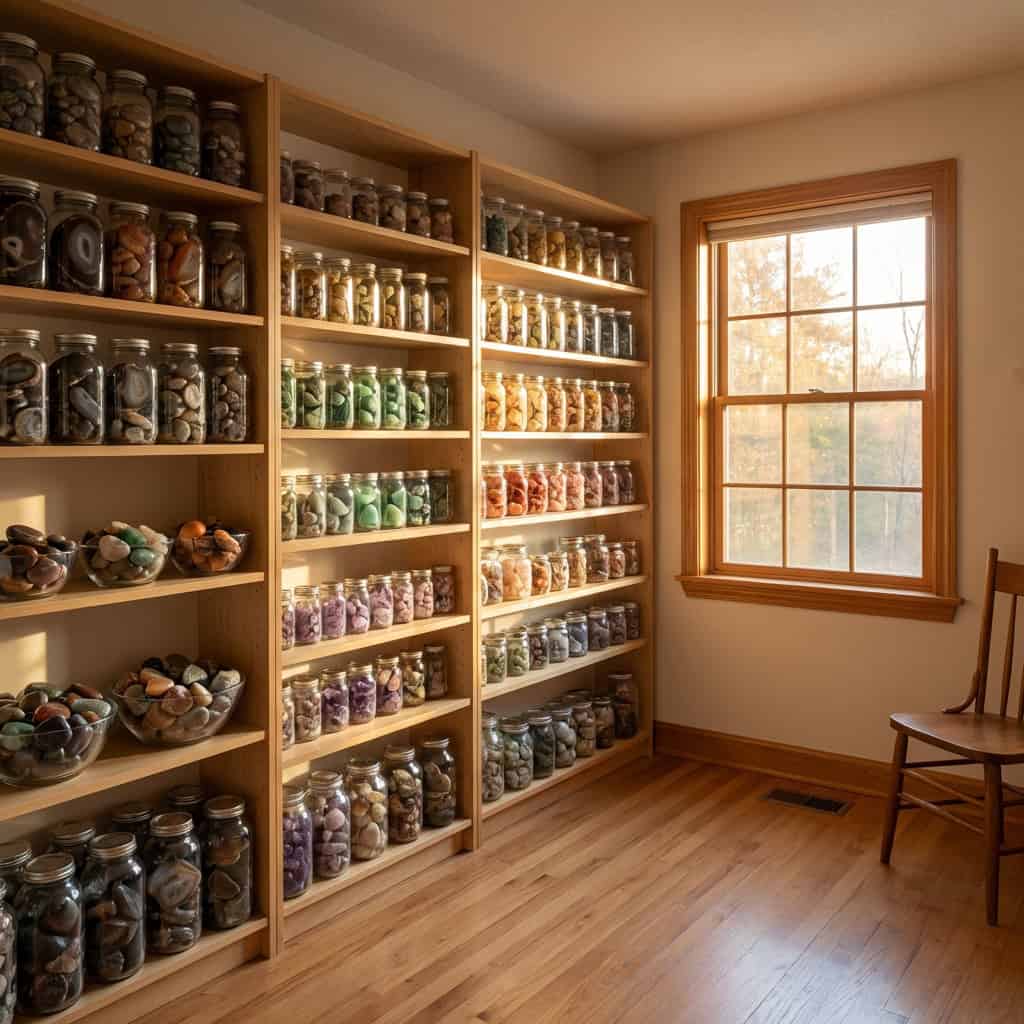 Rocks. Polished, tumbled, sorted by size and color — hundreds of them, filling buckets in the basement. Dolls. Porcelain, cloth, and plastic, displayed on shelves in a spare room that the new homeowner opens for the first time and immediately wishes they had not. Bottles. Old medicine bottles, soda bottles, milk bottles — lined up on every windowsill and shelf in the garage.
