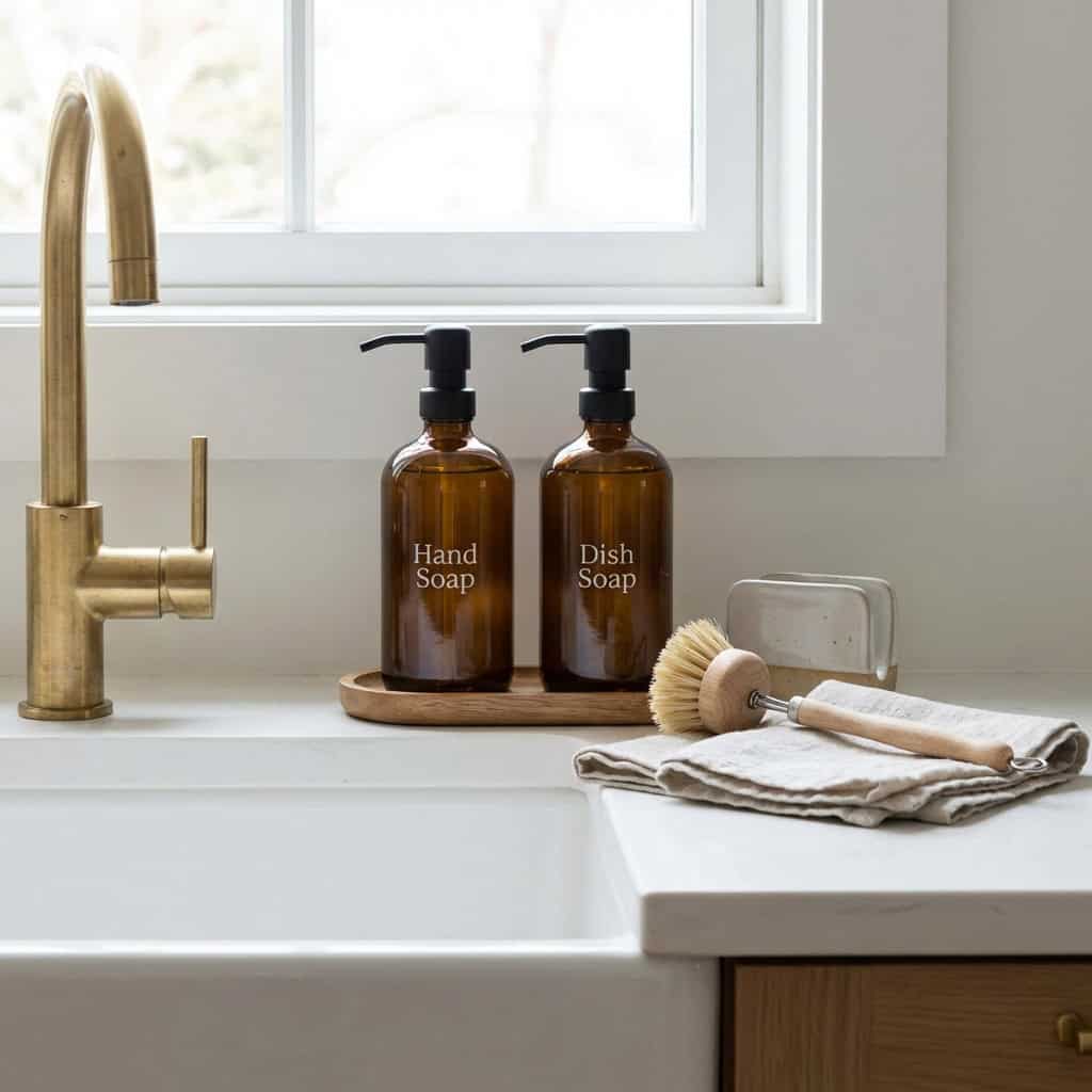 Dish soap bottles are designed to scream at you in the grocery store aisle. They don’t belong on your counter.