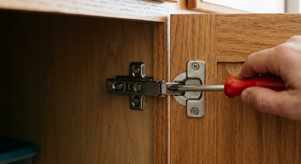 The Pro Tip: Grab a Phillips head screwdriver and slowly turn the adjustment screws on the hinge until the door aligns perfectly.