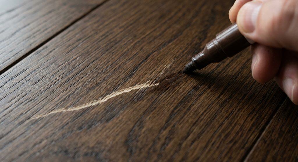 You drop a heavy object or drag a chair, leaving a visible, light-colored scratch on your dark hardwood floors.