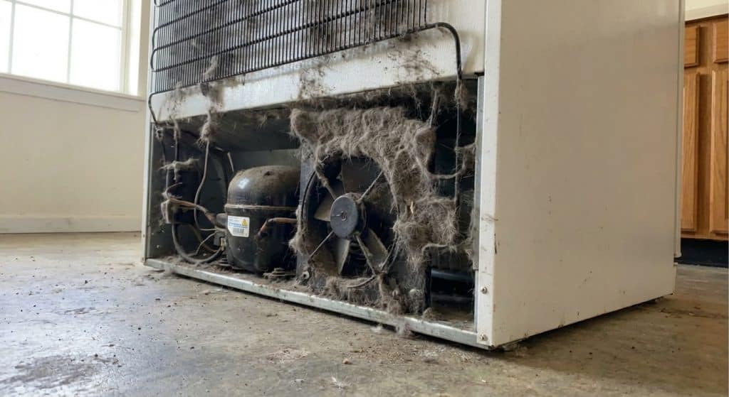 If those coils are blanketed in a thick layer of dog hair and dust, the fridge will literally suffocate and overheat.