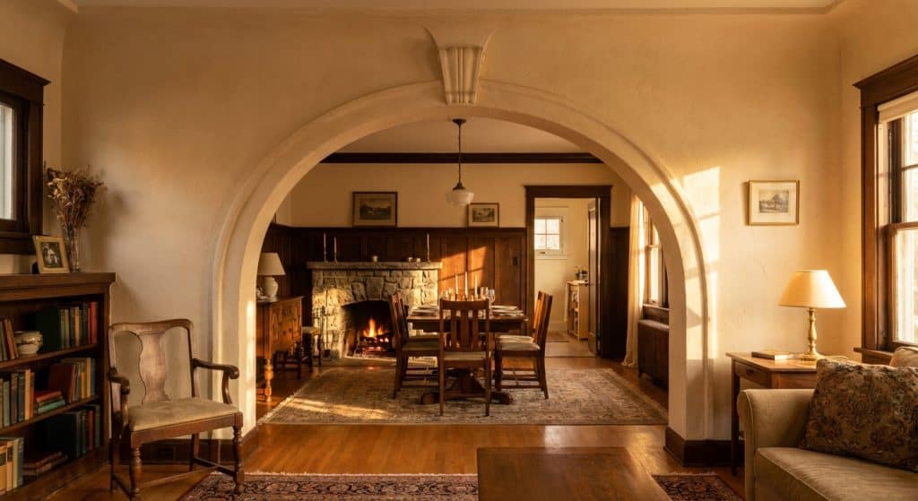 Arched doorways. Vaulted openings between rooms. Rounded transitions where the dining room meets the hallway. These were not accidents. They were deliberate architectural choices that added grace and flow to a house.