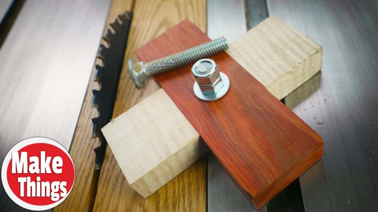 Rob’s go-to method for long-lasting, high-strength knobs involves sandwiching a square nut inside a lap joint. The two pieces of wood are glued together with a precisely sized cavity that traps the nut and keeps it from rotating.