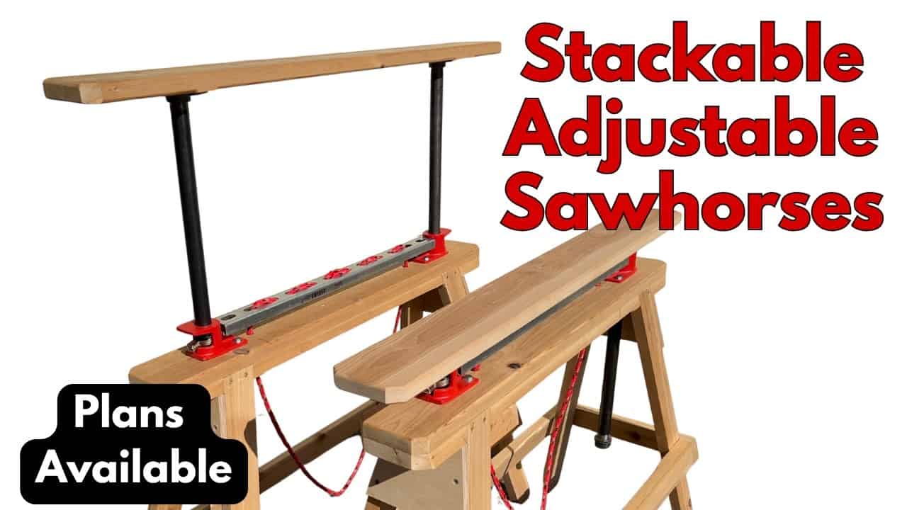 These sawhorses are a practical shop upgrade because they combine stackable storage, multiple working heights, and solid construction without a complex parts list.