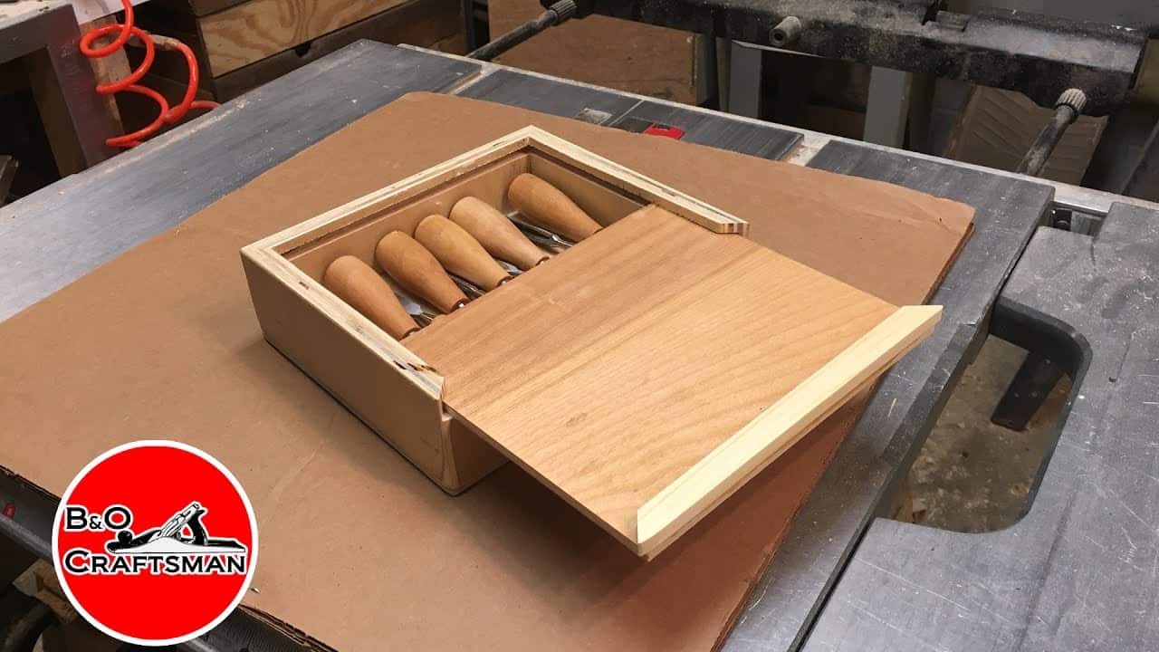 This project was built and designed by Chris from B&O Craftsman. It’s a compact and elegant storage box made specifically for chisels, crafted from leftover Baltic birch plywood.