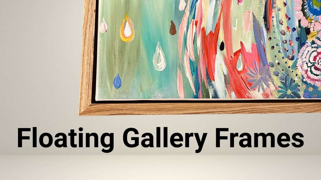 Floating frames create a subtle shadow reveal between the canvas and frame edge, making the artwork appear as if it’s suspended in the center.