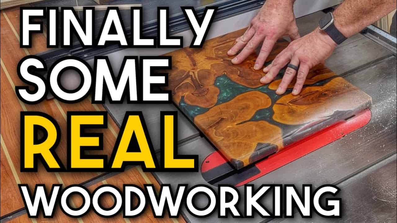 Chris tackles a handful of shop work in one video, including a custom cover for a wedding venue, a small product collaboration with his daughter, and the repurposing of resin-encased wood “cookies” into a useful tabletop piece.