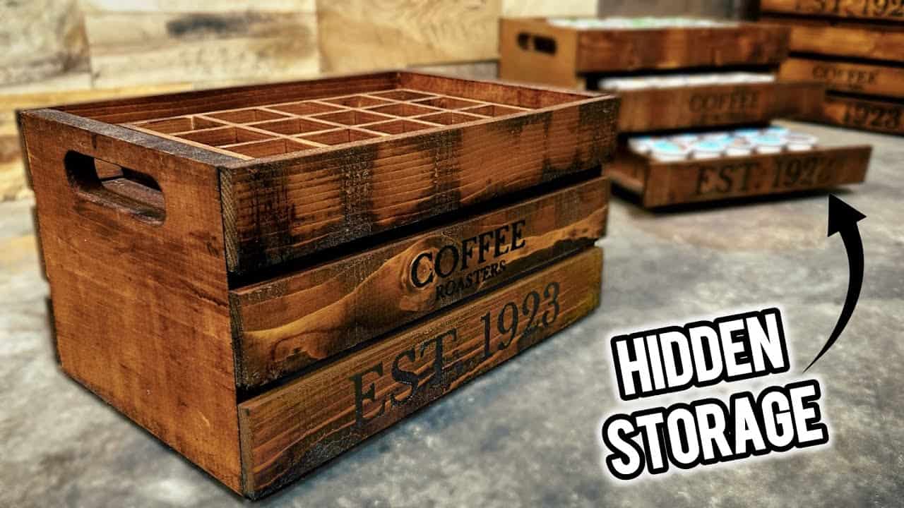 This woodworking project was built and designed by Josh Wright from Josh Wright Woodworking. These vintage-inspired coffee crates provide a stylish and practical solution for storing coffee pods, making them ideal for any coffee lover.