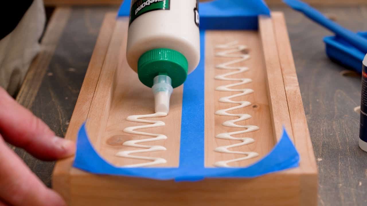 Keep the two glues separate so CA does not contaminate the main glue surfaces; a thin film of CA in the glue line can prevent a good wood-glue bond. Masking tape along adjacent surfaces makes cleanup easier and protects visible faces from CA residue.