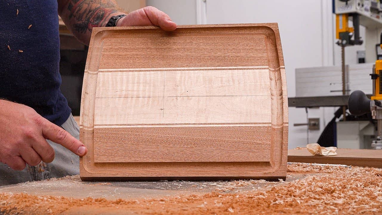 Routing a juice groove that follows a curved outline elevates the quality of custom cutting boards and serving pieces by keeping the groove visually and functionally consistent with the shape.
